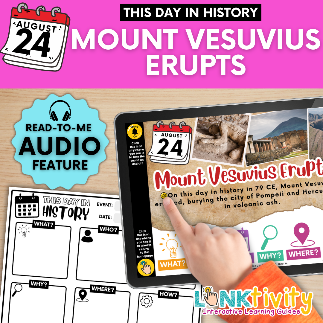 Our This Day in History digital LINKtivity® series is designed with diverse learners in mind, featuring user-friendly navigation and audio support that reads text to students, making it perfect for struggling readers and English language learners. Get ready for a fun and interactive learning experience!