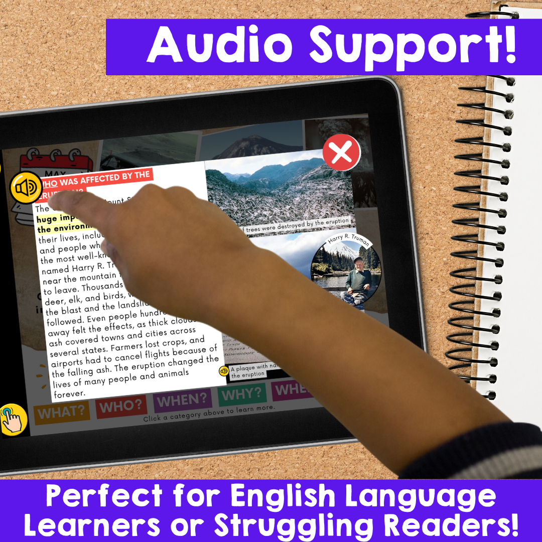Our This Day in History digital LINKtivity® series is designed with diverse learners in mind, featuring user-friendly navigation and audio support that reads text to students, making it perfect for struggling readers and English language learners. Get ready for a fun and interactive learning experience!